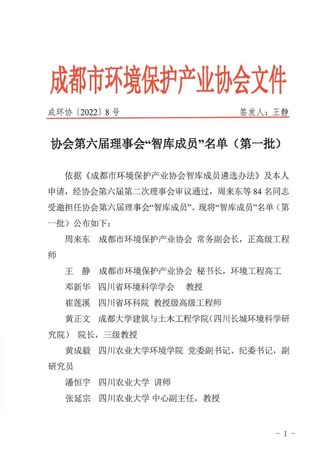 成都市環(huán)境保護產(chǎn)業(yè)協(xié)會于近日公布了協(xié)會第六屆理事會“百名青年企業(yè)家”名單(第一批)和“智庫成員”名單(第一批),我司總經(jīng)理邱鑫海先生均入選。