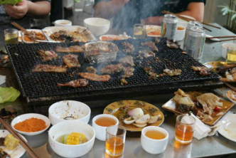 中午12點(diǎn),我們到達(dá)“又一絕”農(nóng)家莊吃燒烤和銅鍋,大家大口吃肉,大碗喝酒,品嘗著胡老師珍藏了三年的自釀葡萄美酒。邊吃邊談?wù)撝ぷ骱蜕睿魇慵阂姟?/span>