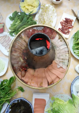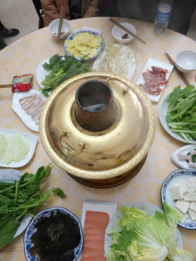 5點(diǎn)下山,回到酒店,開(kāi)始晚餐:特色臧家火鍋?;疱伒奈兜肋€是很不錯(cuò)的,主題以素菜為主肉食為輔,廚師刀工特別好,肉薄似紗,私人訂制一人一片。