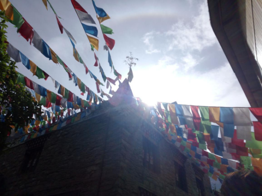 晚飯后回房間休憩修整,8點(diǎn)30晚上的活動(dòng)便開(kāi)始了——烤全羊和跳鍋莊!跟著熱情的“瑟浪”和“以沫”一陣的群魔亂舞,盡管大家的舞姿都迷之奇特,但是在當(dāng)下的氣氛下依然覺(jué)得很美好,每個(gè)人臉上洋溢的都是滿(mǎn)滿(mǎn)的開(kāi)心。一陣活絡(luò)后大家圍坐下來(lái)開(kāi)始準(zhǔn)備吃!烤!全!羊?。∵^(guò)程中不斷有游客上去唱著自己拿手的歌曲為大家助興,其中包括我們的歌神謙謙,一開(kāi)口就驚艷四座,歡呼聲鼓掌聲不斷。熱熱鬧鬧的篝火晚會(huì)以及一天的行程在導(dǎo)游的歌聲中結(jié)束。