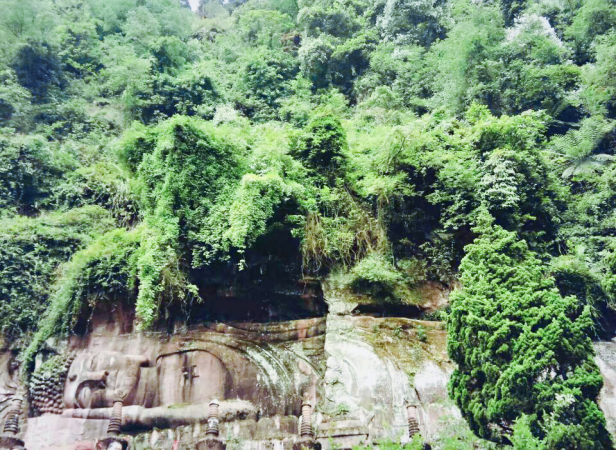 這個(gè)就是傳說中的臥佛了,據(jù)說是清時(shí)代遺留下來的古石刻和寺廟,利用天然巖石開鑿建造了一尊長45.3米、高12.5米的大型臥佛。