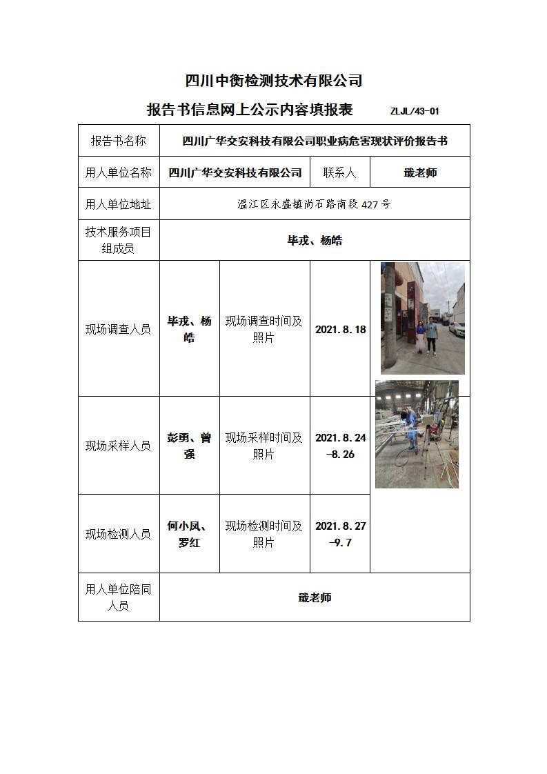 四川廣華交安科技有限公司職業(yè)病危害現(xiàn)狀評價報告書