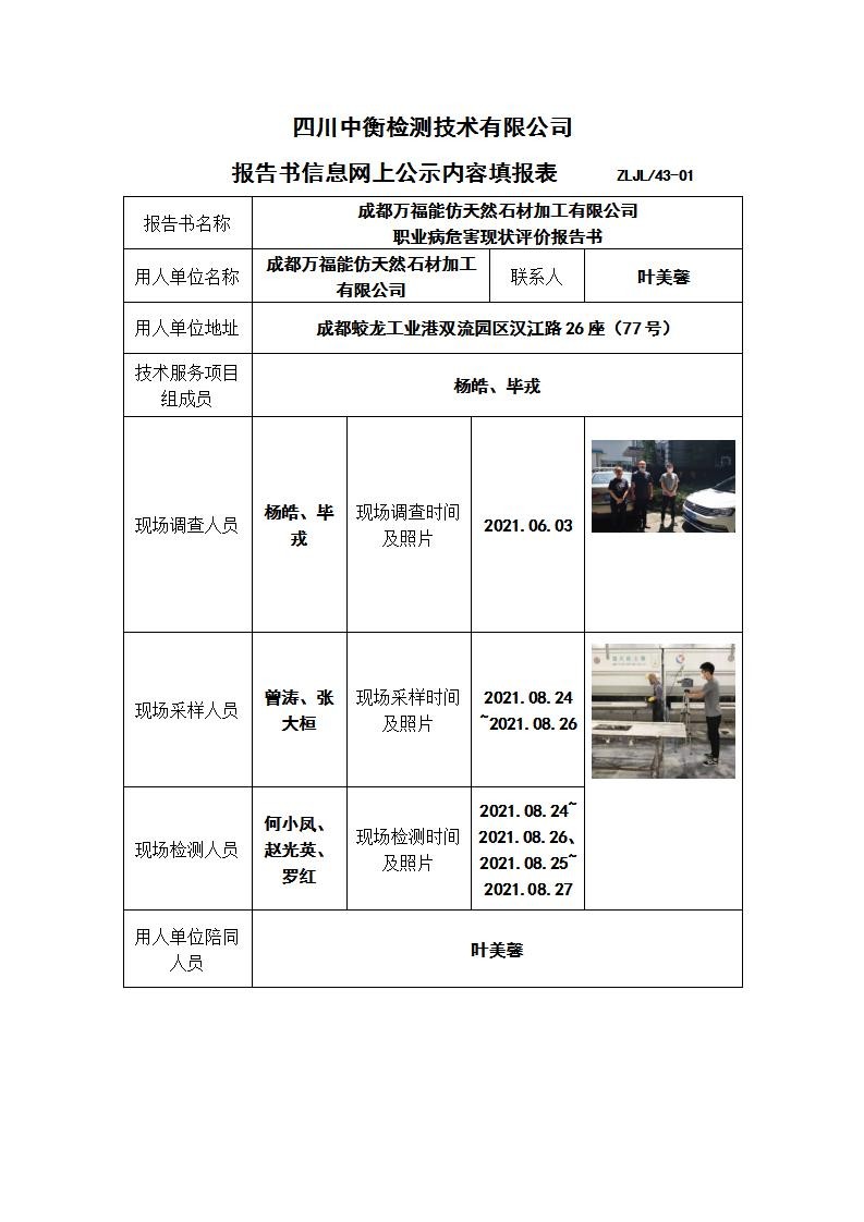 成都萬福能仿天然石材加工有限公司 職業(yè)病危害現(xiàn)狀評價