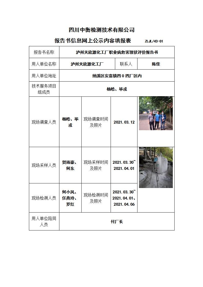 瀘州天欣源化工廠職業(yè)病危害現(xiàn)狀評價