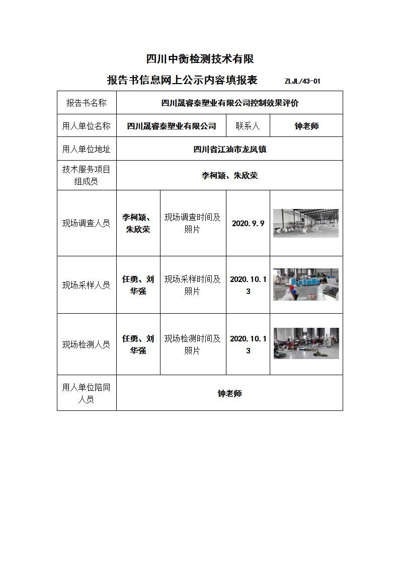 四川晟睿泰塑業(yè)有限公司控制效果評價