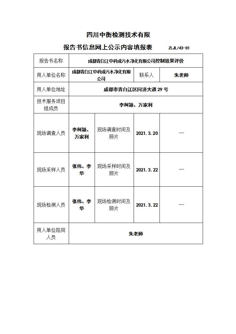 成都青白江中科成污水凈化有限公司控制效果評(píng)價(jià)