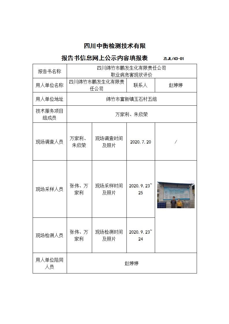 四川綿竹市鵬發(fā)生化有限責(zé)任公司 職業(yè)病危害現(xiàn)狀評(píng)價(jià)