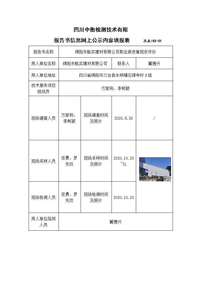 綿陽(yáng)市航實(shí)建材有限公司職業(yè)病危害現(xiàn)狀評(píng)價(jià)