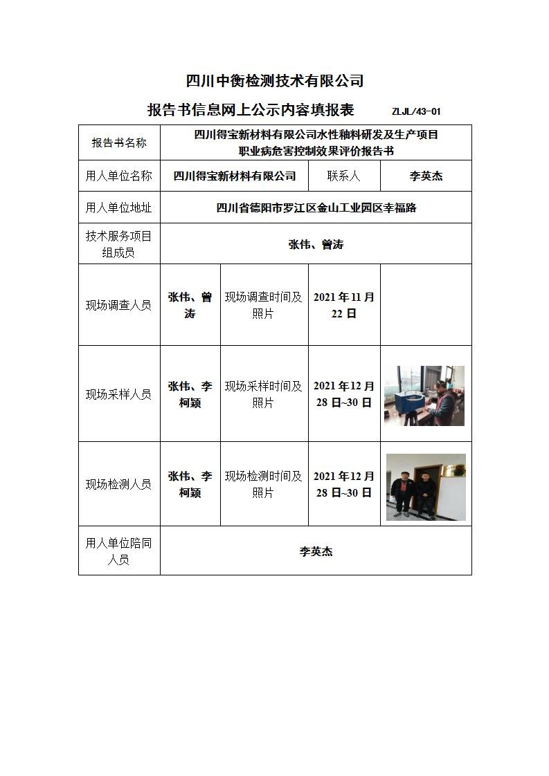 四川得寶新材料有限公司水性釉料研發(fā)及生產項目 職業(yè)病危害控制效果評價