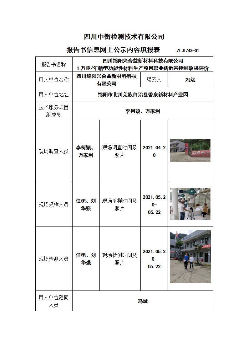 四川綿陽興合益新材料科技有限公司 1萬噸/年新型功能性材料生產(chǎn)項目職業(yè)病危害控制效果評價