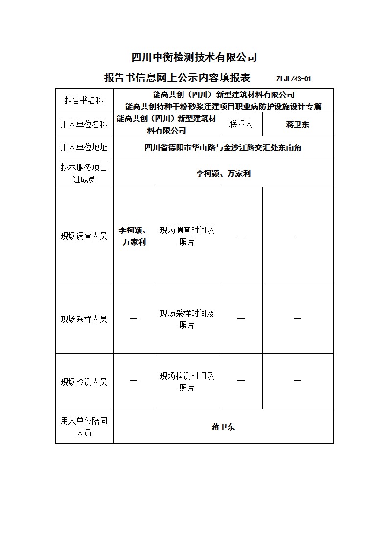 能高共創(chuàng)(四川)新型建筑材料有限公司 能高共創(chuàng)特種干粉砂漿遷建項(xiàng)目職業(yè)病防護(hù)設(shè)施設(shè)計(jì)專篇