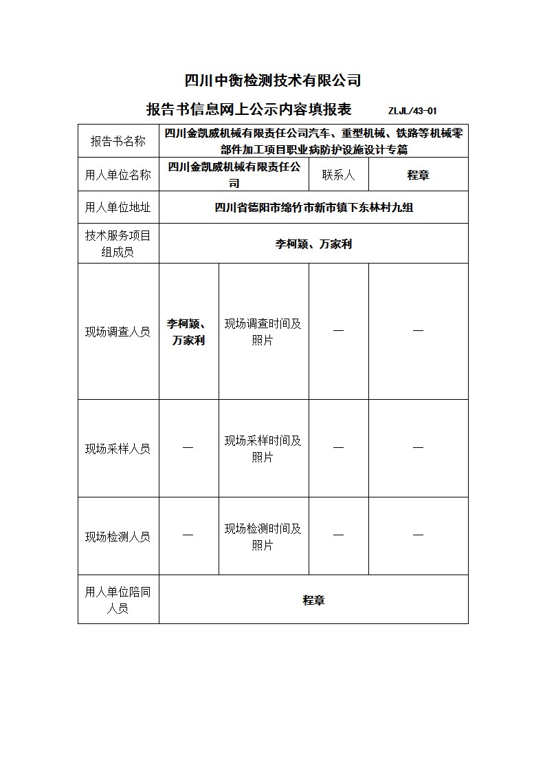 四川金凱威機(jī)械有限責(zé)任公司汽車(chē)、重型機(jī)械、鐵路等機(jī)械零部件加工項(xiàng)目職業(yè)病防護(hù)設(shè)施設(shè)計(jì)專(zhuān)篇