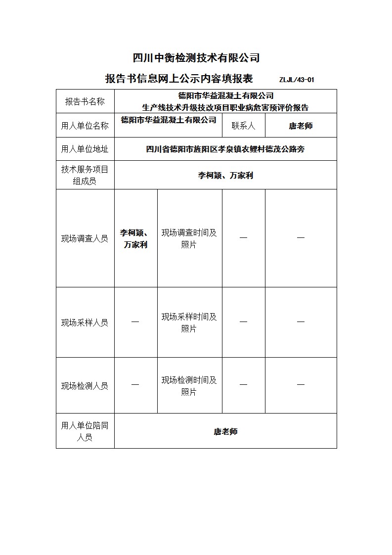 德陽市華益混凝土有限公司 生產(chǎn)線技術(shù)升級(jí)技改項(xiàng)目職業(yè)病危害預(yù)評(píng)價(jià)報(bào)告