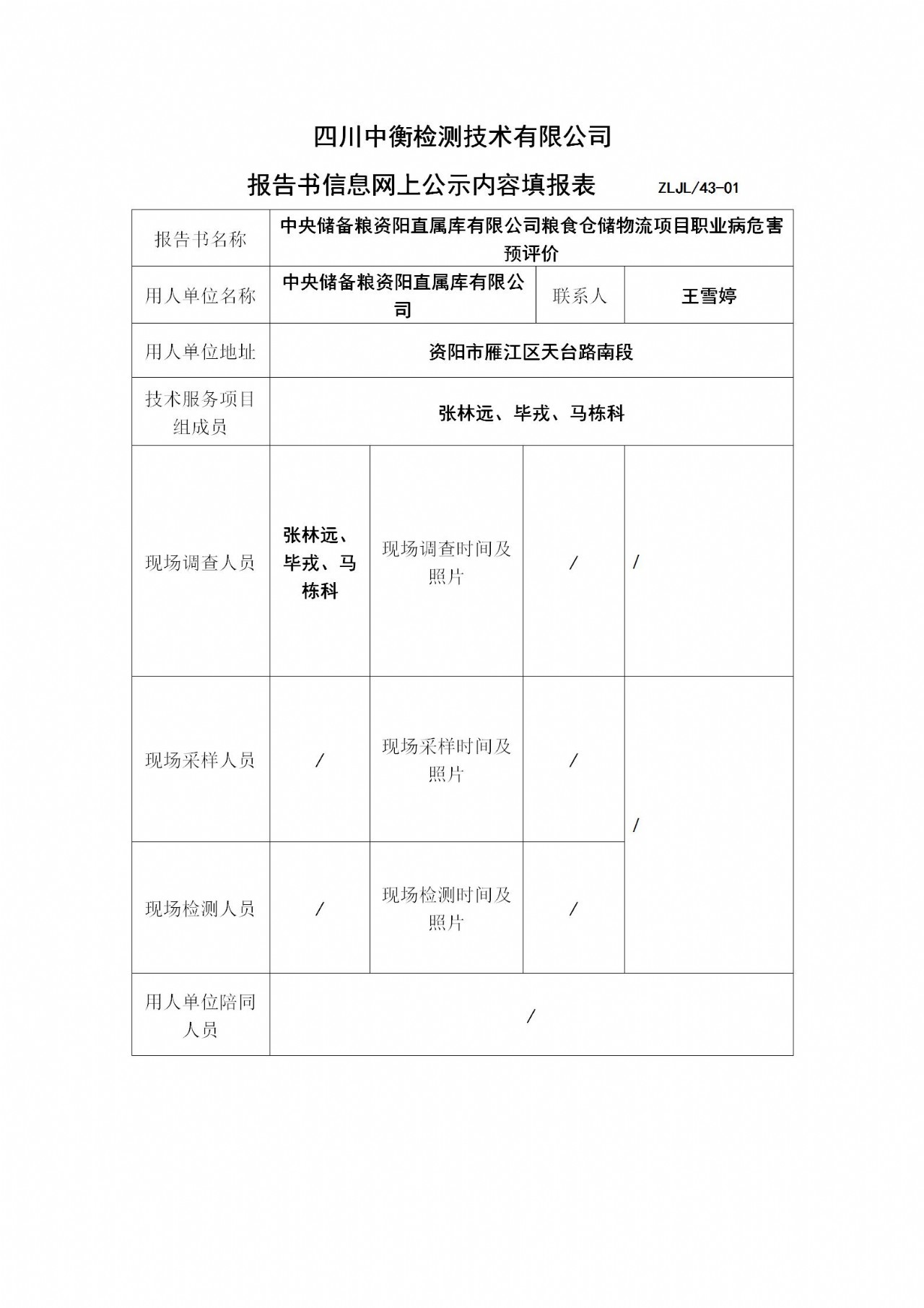 中央儲備糧資陽直屬庫有限公司糧食倉儲物流項目職業(yè)病危害預(yù)評價