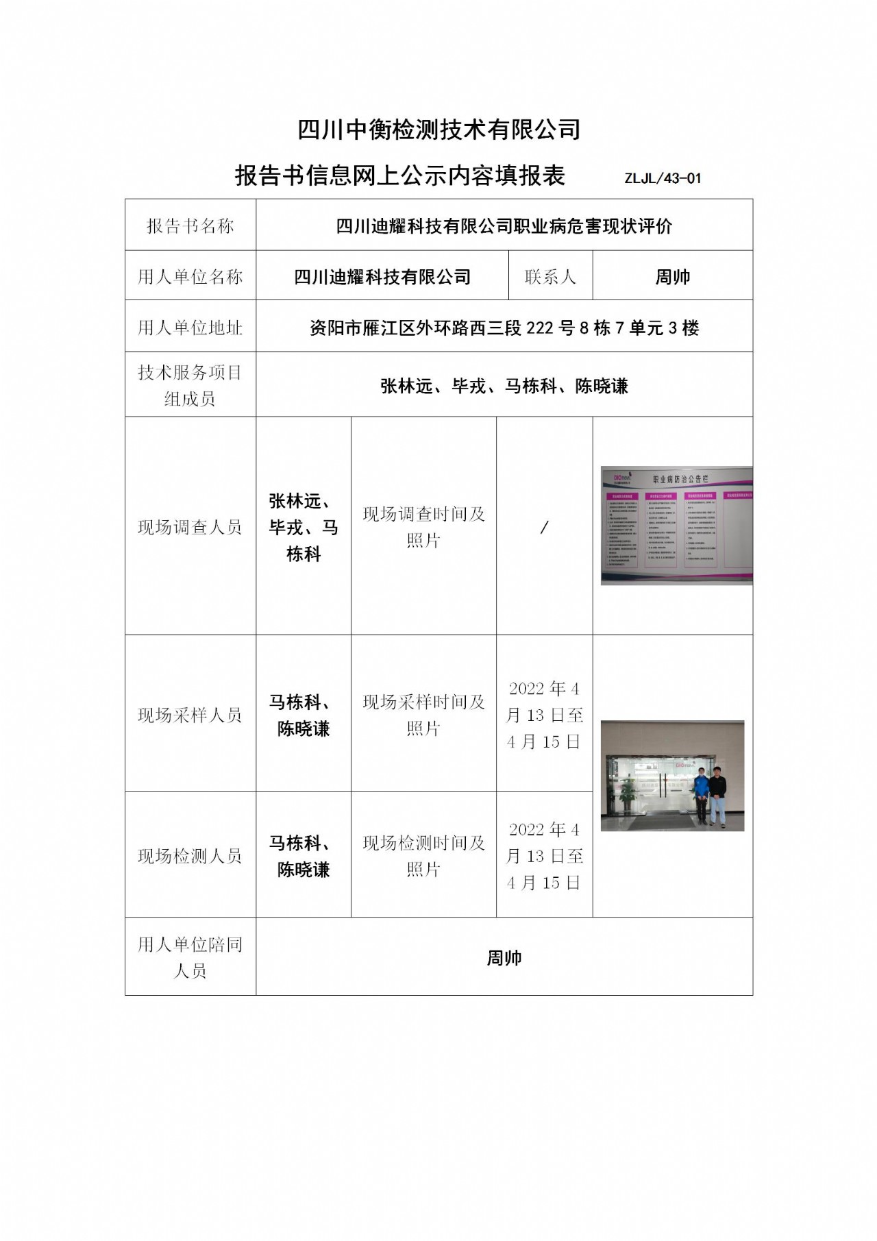 四川迪耀科技有限公司職業(yè)病危害現(xiàn)狀評(píng)價(jià)