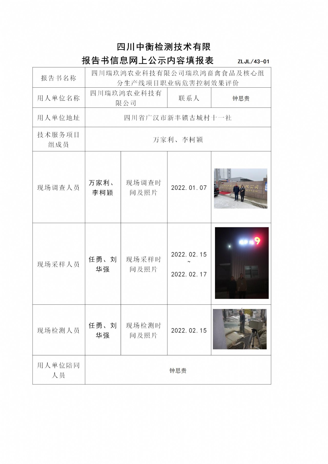 四川瑞玖鴻農(nóng)業(yè)科技有限公司瑞玖鴻畜禽食品及核心組分生產(chǎn)線項(xiàng)目職業(yè)病危害控制效果評(píng)價(jià)