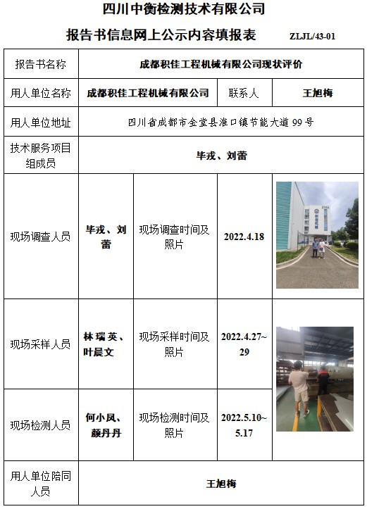 成都積佳工程機械有限公司現(xiàn)狀評價