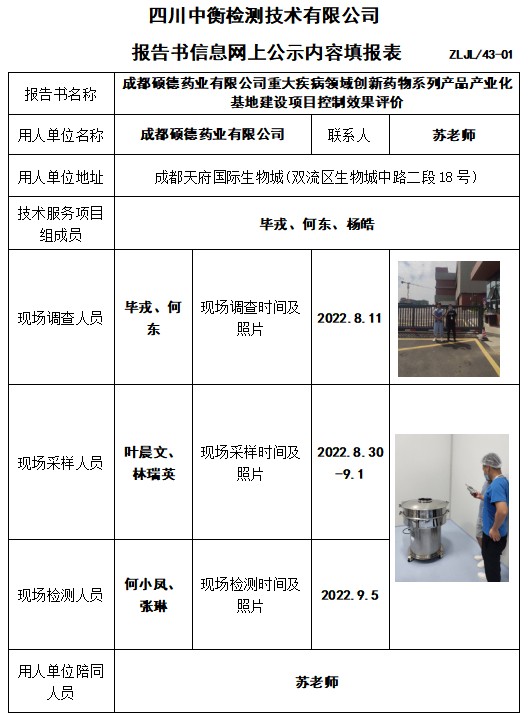 成都碩德藥業(yè)有限公司重大疾病領(lǐng)域創(chuàng)新藥物系列產(chǎn)品產(chǎn)業(yè)化基地建設(shè)項目控制效果評價
