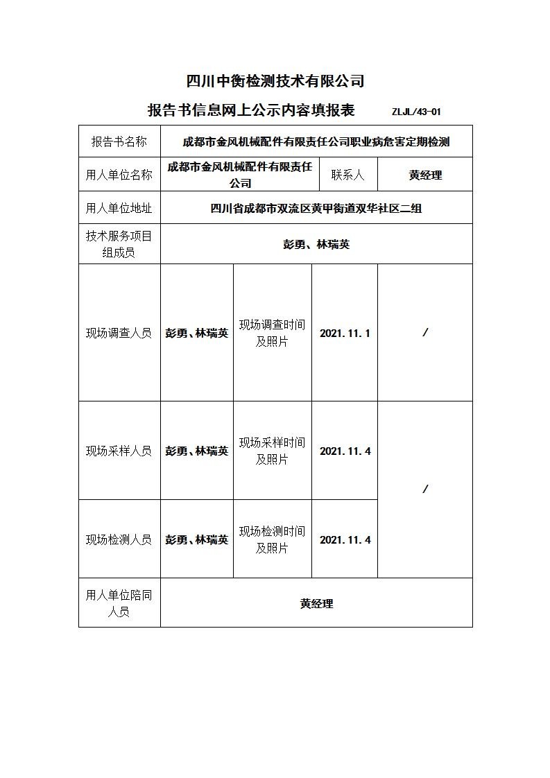成都市金風(fēng)機(jī)械配件有限責(zé)任公司定期檢測
