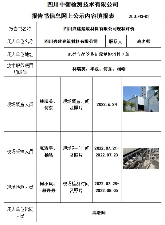 四川興建建筑材料有限公司現(xiàn)狀評價