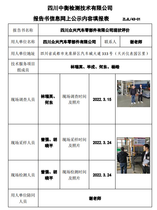 四川眾興汽車零部件有限公司現(xiàn)狀評價