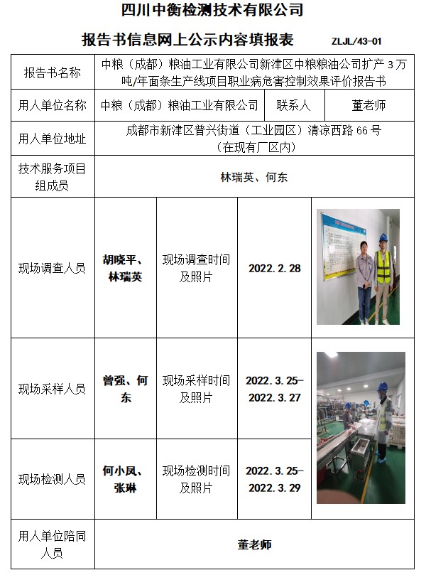 中糧(成都)糧油工業(yè)有限公司新津區(qū)中糧糧油公司擴(kuò)產(chǎn)3萬(wàn)噸/年面條生產(chǎn)線(xiàn)項(xiàng)目職業(yè)病危害控制效果評(píng)價(jià)