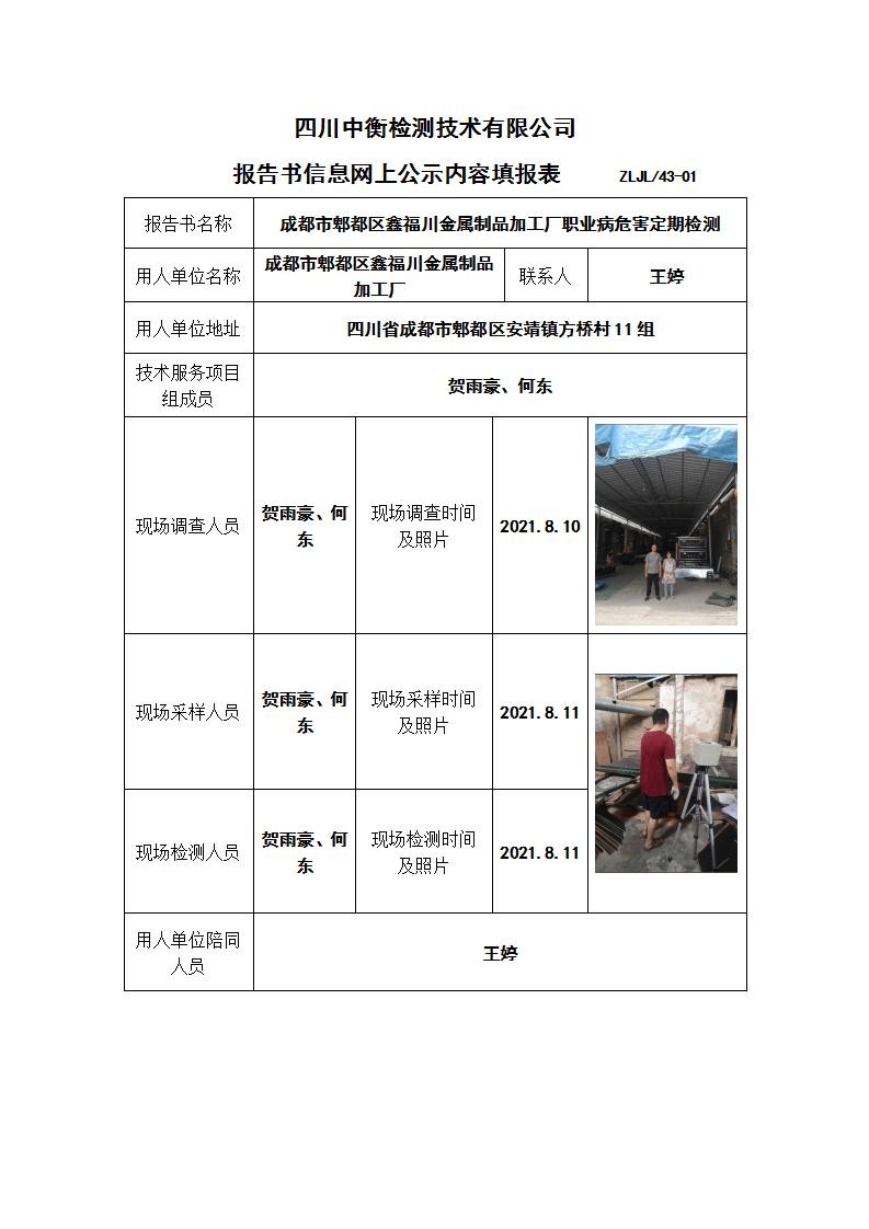 成都市郫都區(qū)鑫福川金屬制品加工廠職業(yè)病危害定期檢測