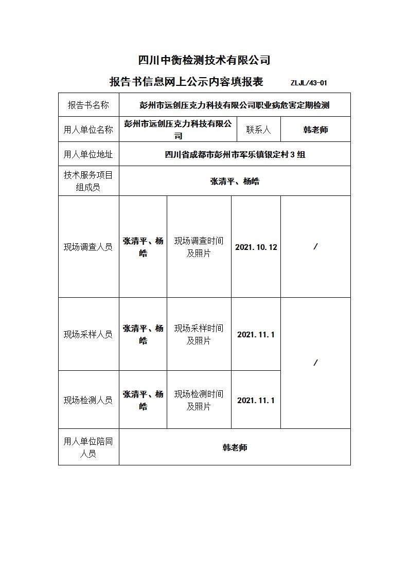 彭州市遠(yuǎn)創(chuàng)壓克力科技有限公司定期檢測