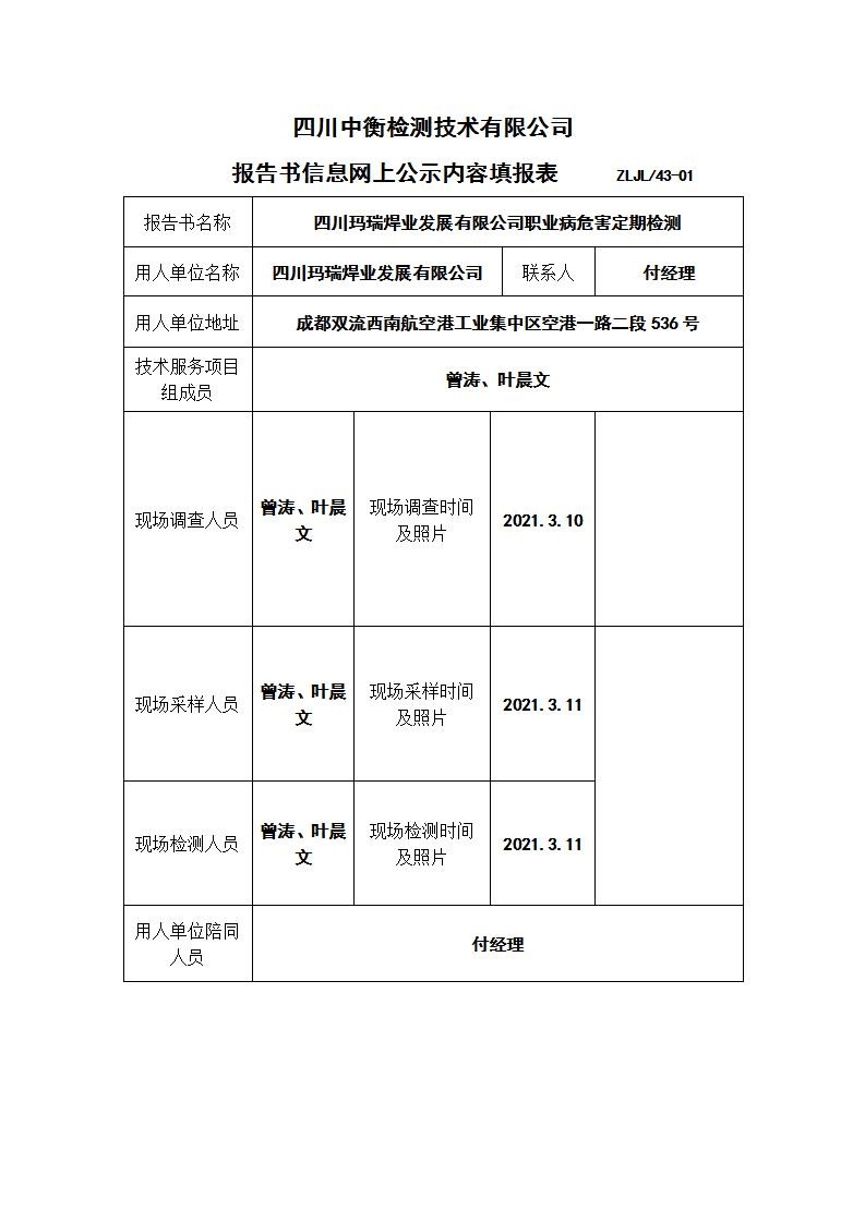 四川瑪瑞焊業(yè)發(fā)展有限公司職業(yè)病危害定期檢測