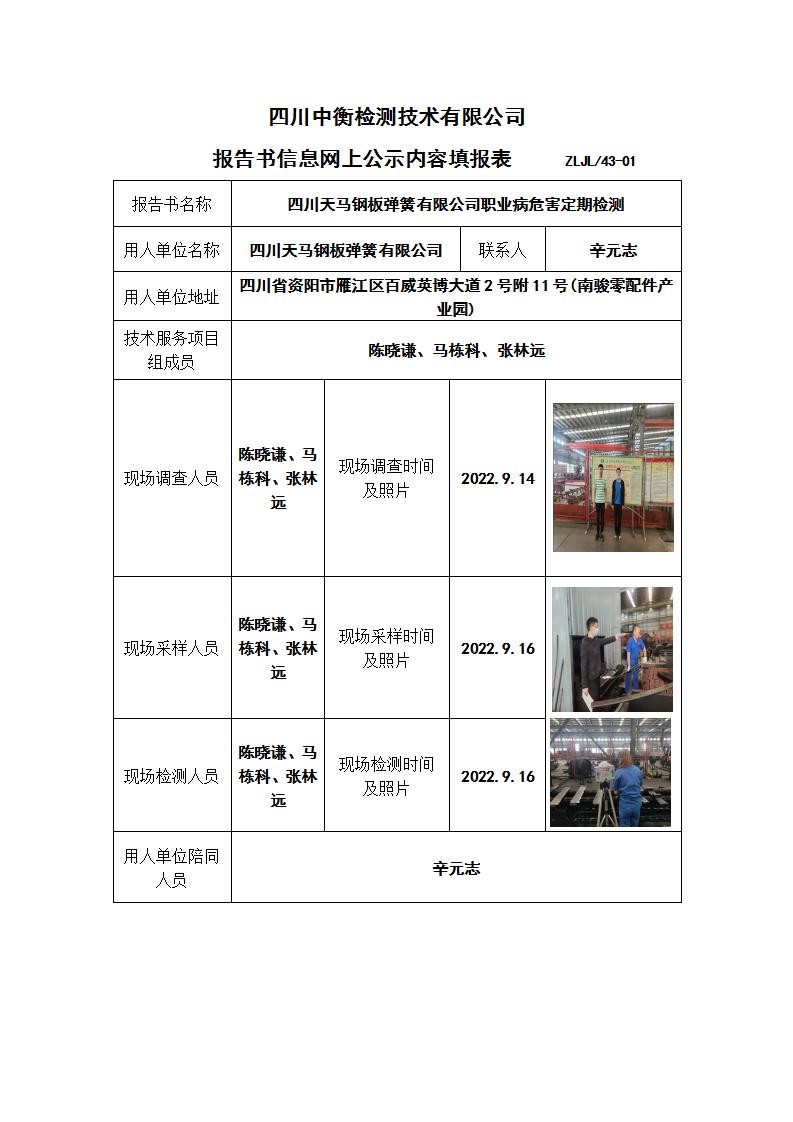 四川天馬鋼板彈簧有限公司職業(yè)病危害定期檢測