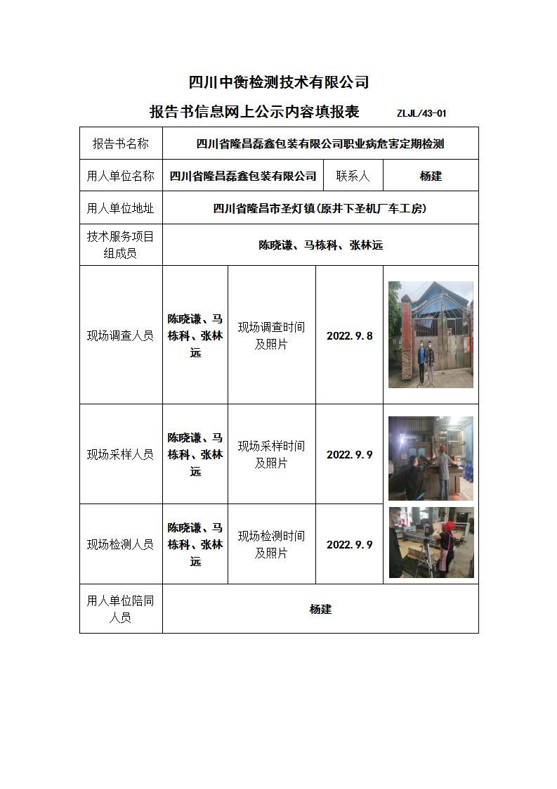 四川省隆昌磊鑫包裝有限公司職業(yè)病危害定期檢測(cè)