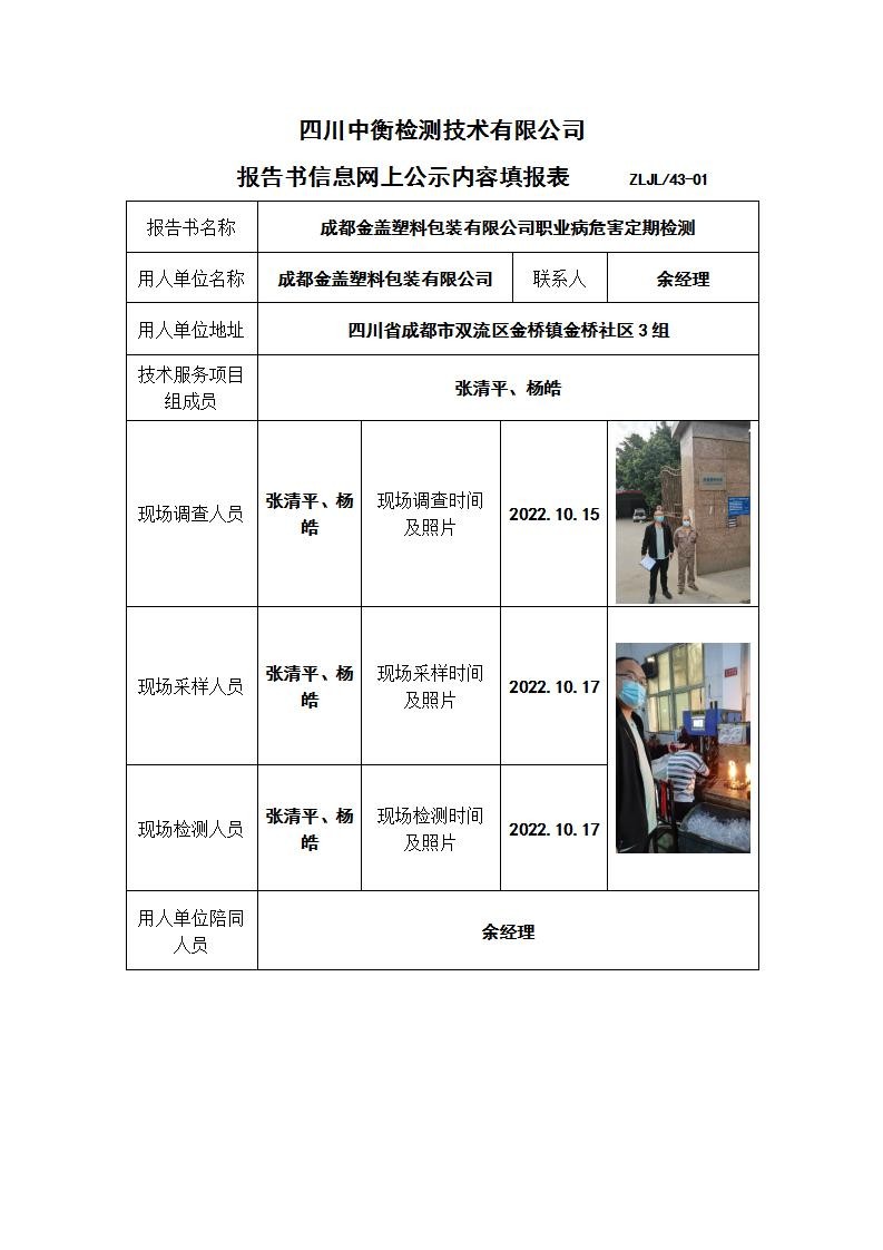 成都金蓋塑料包裝有限公司職業(yè)病危害定期檢測(cè)