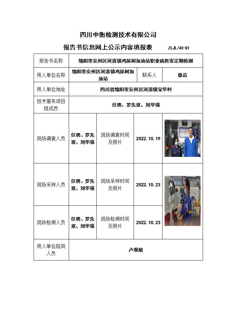 綿陽市安州區(qū)河清鎮(zhèn)雞屎樹加油站職業(yè)病危害定期檢測