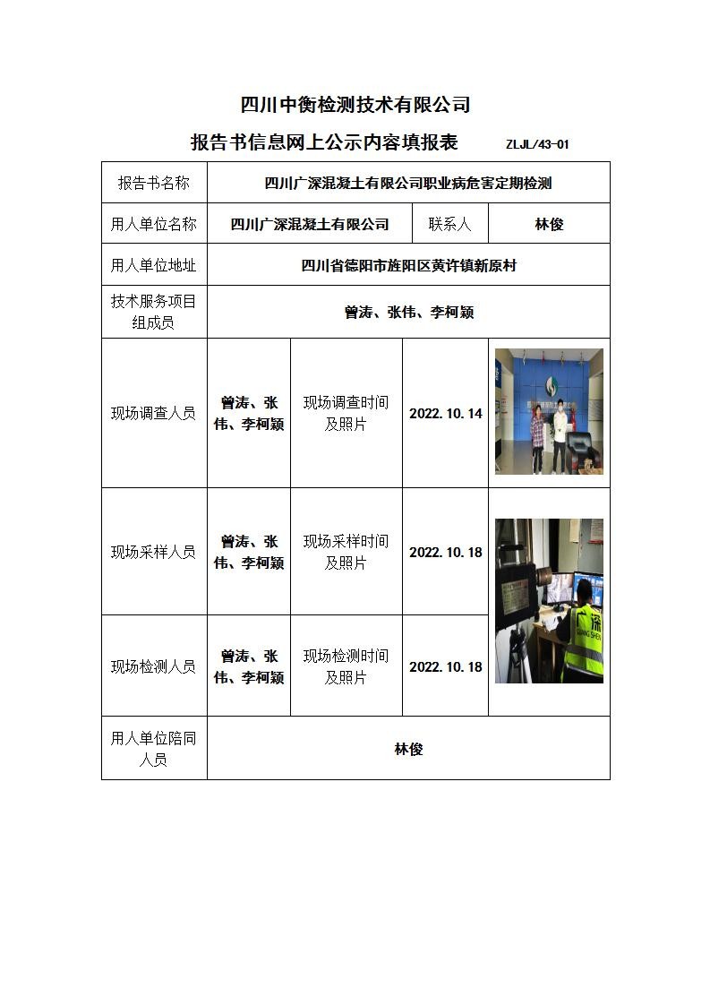 四川廣深混凝土有限公司職業(yè)病危害定期檢測(cè)