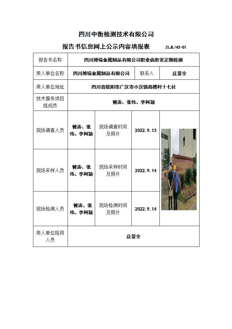 四川博瑞金屬制品有限公司職業(yè)病危害定期檢測