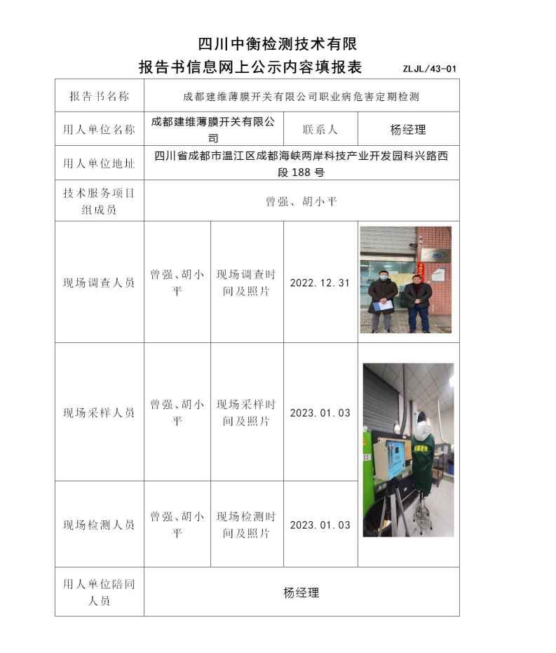 成都建維薄膜開(kāi)關(guān)有限公司職業(yè)病危害定期檢測(cè)