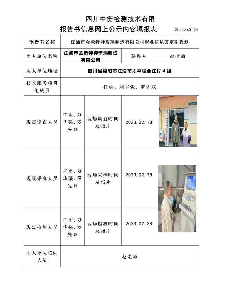 江油市金豪特種玻璃制造有限公司職業(yè)病危害定期檢測(cè)