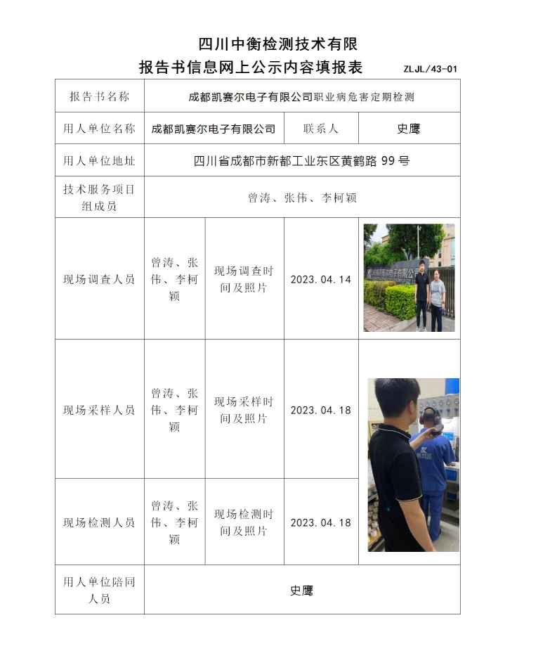 成都凱賽爾電子有限公司職業(yè)病危害定期檢測