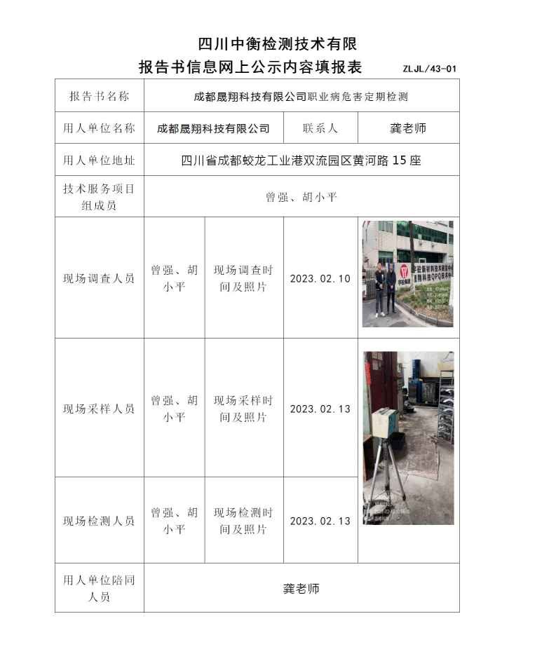 成都晟翔科技有限公職業(yè)病危害定期檢測(cè)
