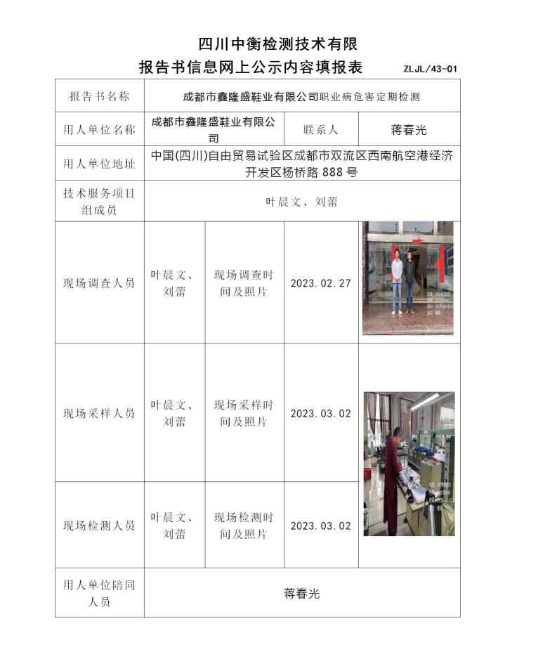成都市鑫隆盛鞋業(yè)有限公司職業(yè)病危害定期檢測(cè)