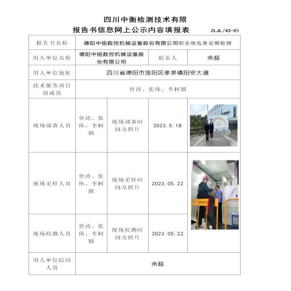 德陽中銘數(shù)控機械設(shè)備股份有限公司職業(yè)病危害定期檢測