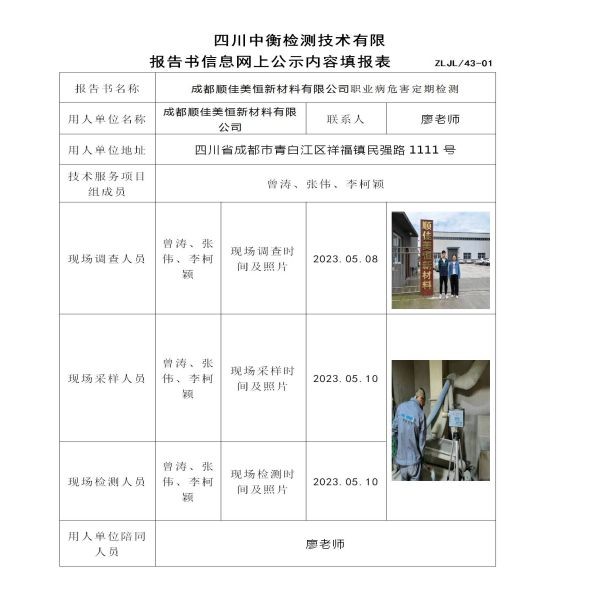 成都順佳美恒新材料有限公司職業(yè)病危害定期檢測(cè)