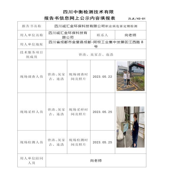 四川誠(chéng)匯金環(huán)保科技有限公司職業(yè)病危害定期檢測(cè)
