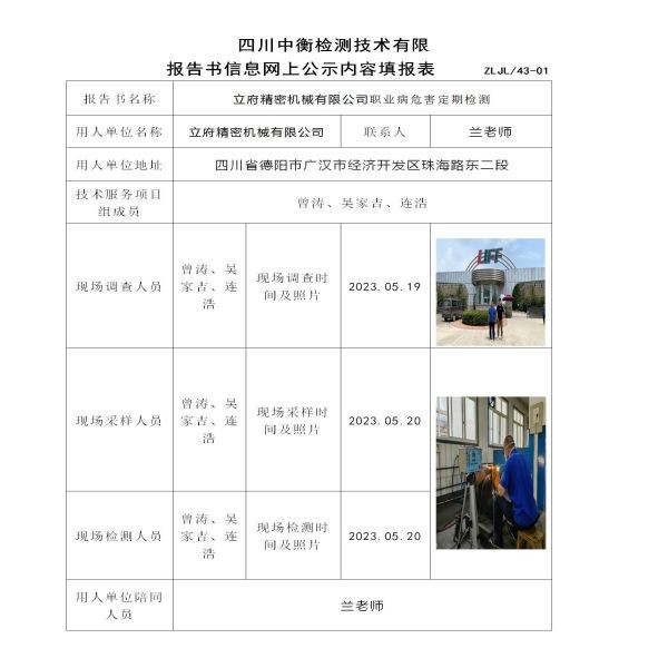 立府精密機(jī)械有限公司職業(yè)病危害定期檢測