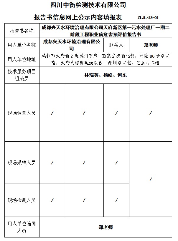 成都興天水環(huán)境治理有限公司天府新區(qū)第一污水處理廠一期二階段工程預(yù)評價