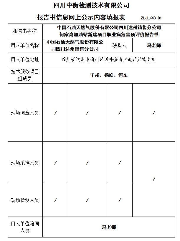 中國石油天然氣股份有限公司四川達州銷售分公司 何家灣加油站新建項目預評價