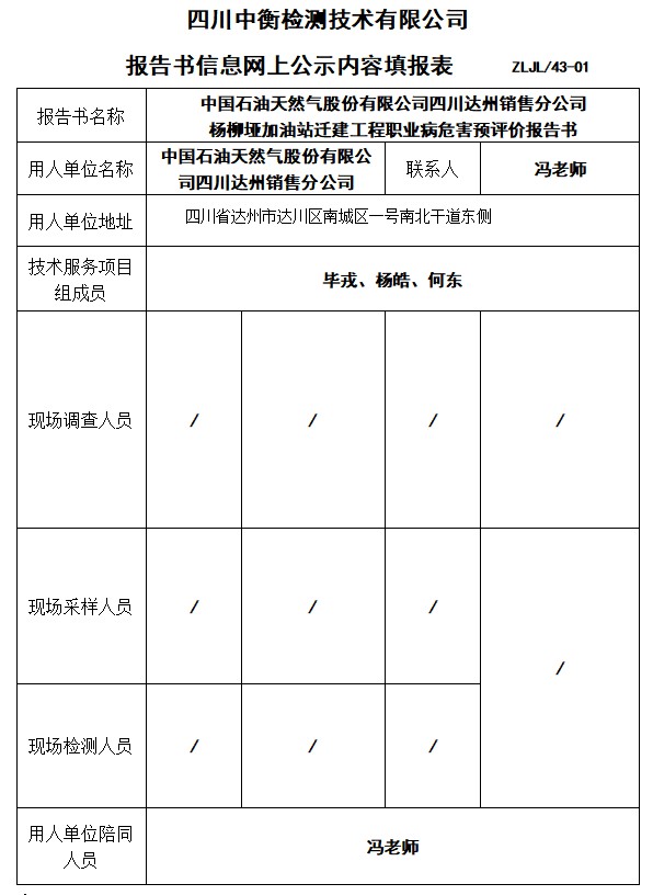 中國石油天然氣股份有限公司四川達州銷售分公司 楊柳埡加油站遷建工程預(yù)評價