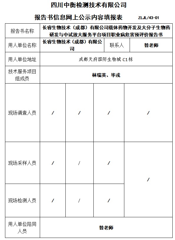 長(zhǎng)睿生物技術(shù)(成都)有限公司載體藥物開(kāi)發(fā)及大分子生物藥研發(fā)與中試放大服務(wù)平臺(tái)項(xiàng)目預(yù)評(píng)價(jià)