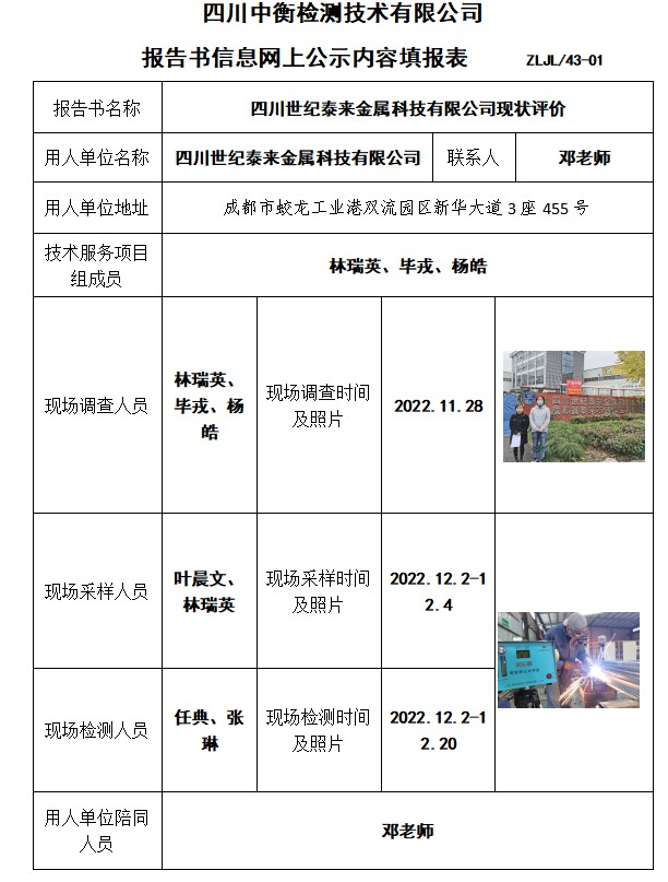 四川世紀(jì)泰來金屬科技有限公司現(xiàn)狀評價(jià)
