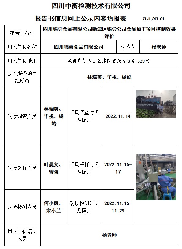四川錦嘗食品有限公司新津區(qū)錦嘗公司食品加工項(xiàng)目控制效果評價(jià)